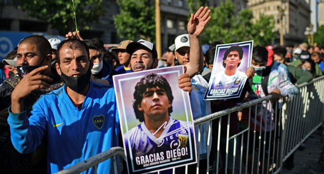 Tens of thousands of people queued to bid farewell to the former Boca Juniors and Napoli striker as his body lay in state in the presidential palace.