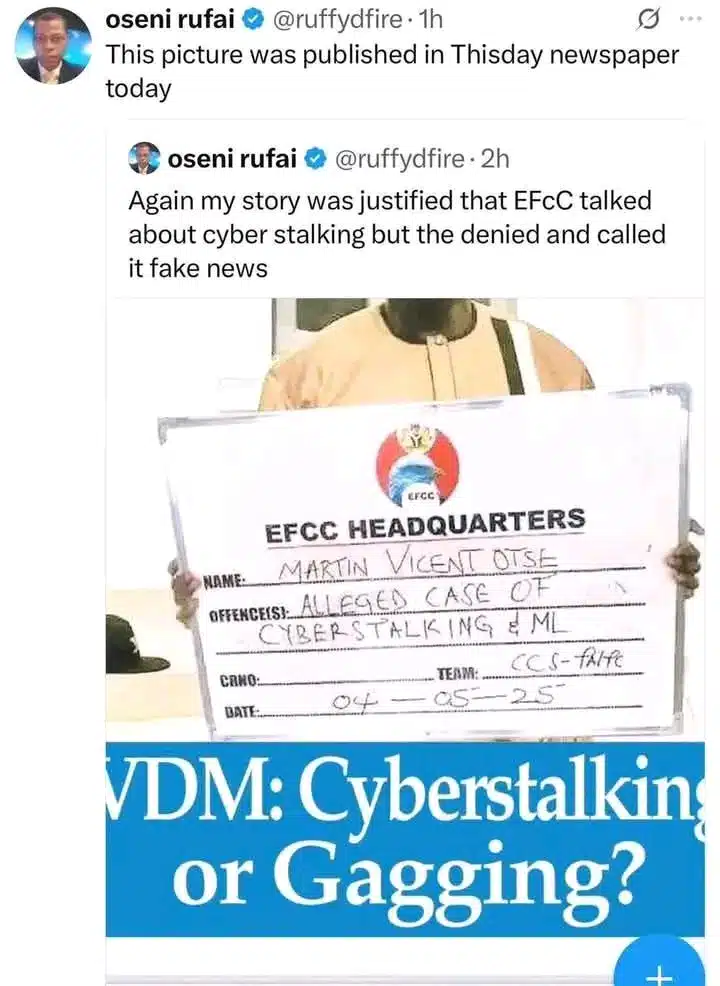 A fresh controversy erupts as the Economic and Financial Crimes Commission (EFCC) accuses controversial critic, Verydarkman of cyberstalking and money laundering.