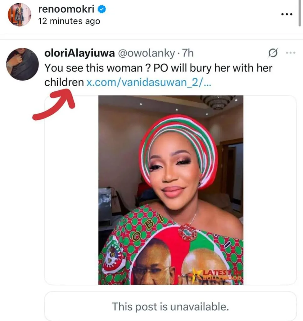 Reno found the post distasteful and has vowed to pay a N1 million reward to anyone who can reveal the identity of the handler so he or she can be prosecuted.