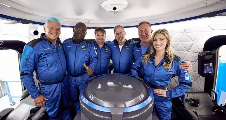 The flight, which carried six passengers, soared past the Karman line (100 km/62 miles) to reach an apogee of i05.2 km (345,044 feet) offering the crew a breathtaking view of Earth and a life-changing experience of weightlessness.