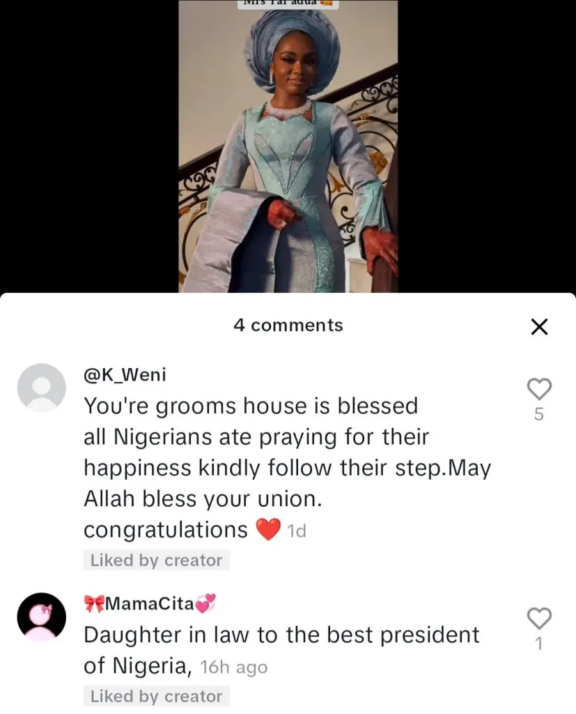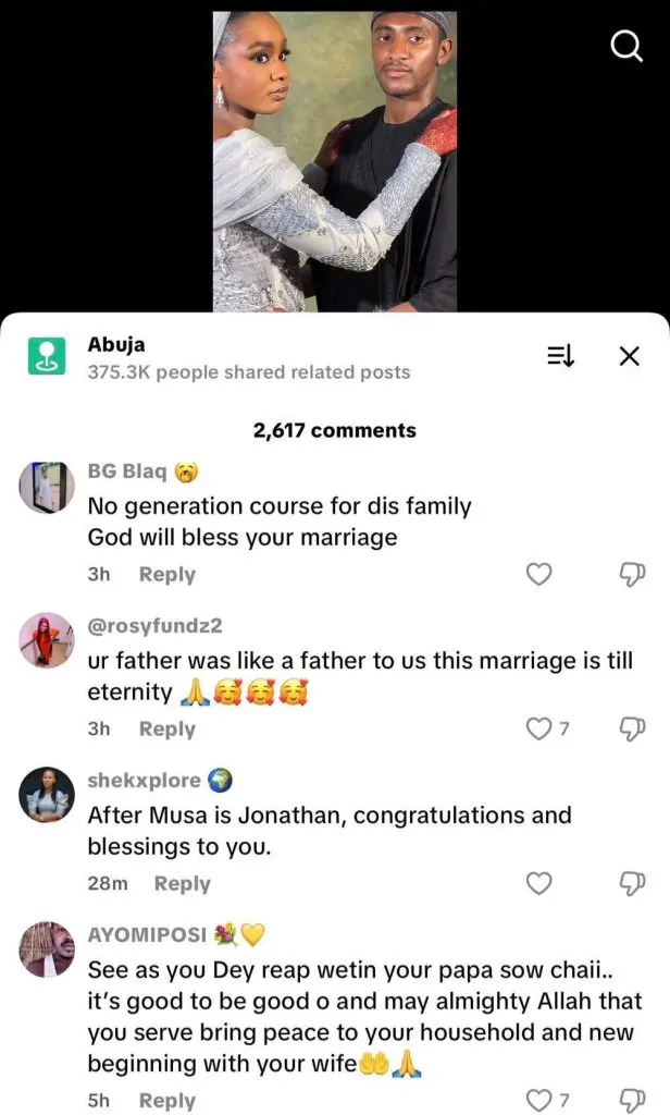 Nigerians on TikTok are showering the love they had for late former President Umar Musa Yar’adua on his son and his new bride.
