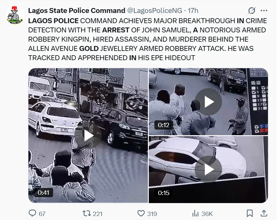 CCTV footage of the 18/08/2025 incident obtained, clearly captured the suspect when he fired at the victim with English pistol,before dispossessing him of his gold necklace jewelry while his accomplice waited on a motorcycle for their escape. The victim, who sustained serious gunshot wounds during the attack,has since been treated and discharged.”