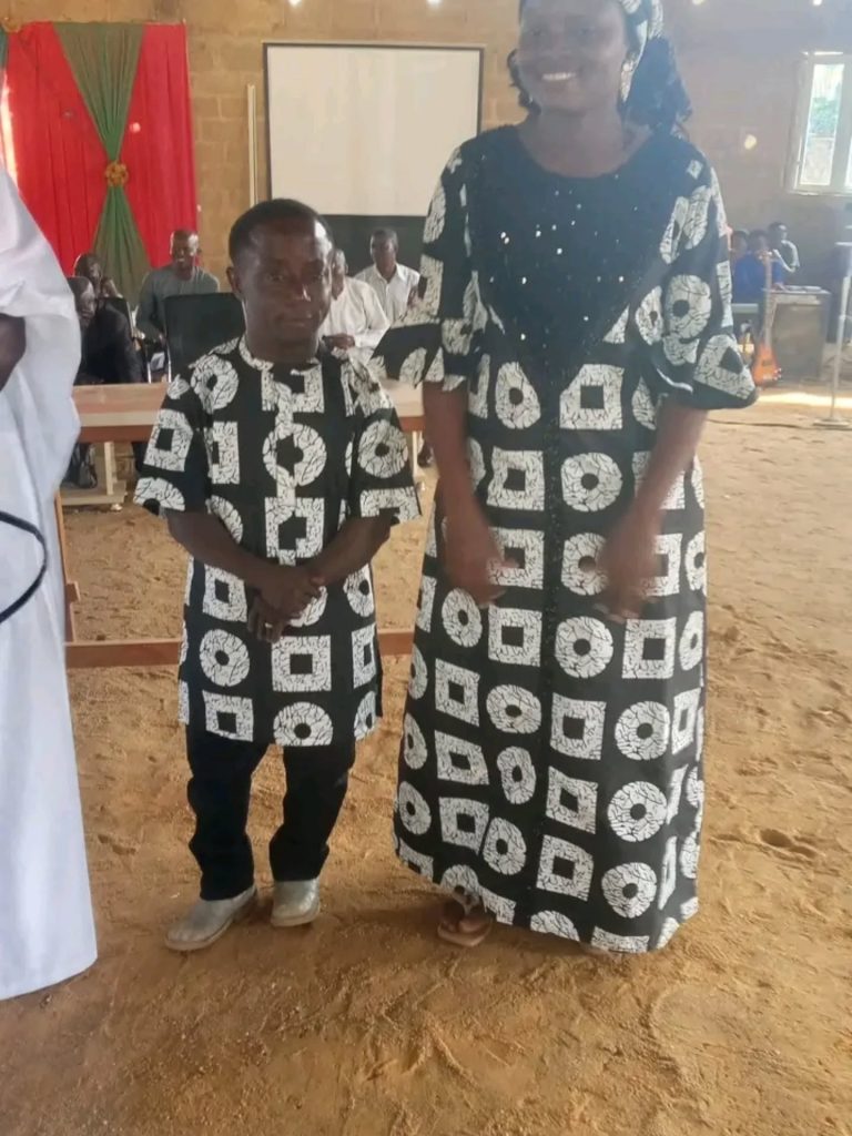A diminutive Nigerian man identified as Naanlong Irmiya, has tied the knot with his tall wife in Jos, Plateau State, proving that love transcends height.